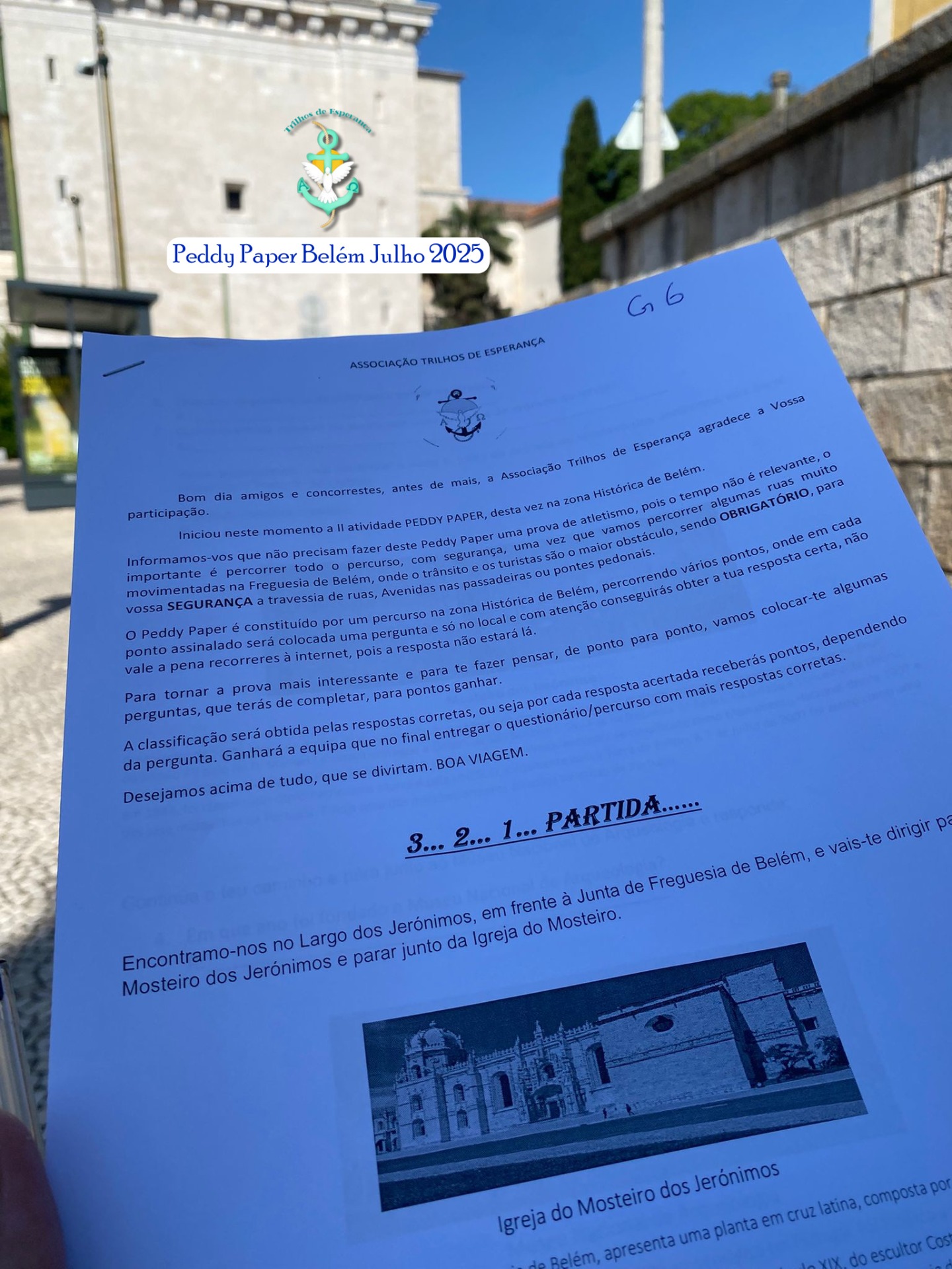A Associação Trilhos de Esperança realizou o seu segundo Peddy Paper, desta vez na bela zona de Belém, num ambiente de diversão, descoberta e espírito de equipa. Entre enigmas, desafios e muita boa disposição, os participantes exploraram os recantos históricos e culturais deste emblemático bairro de Lisboa.